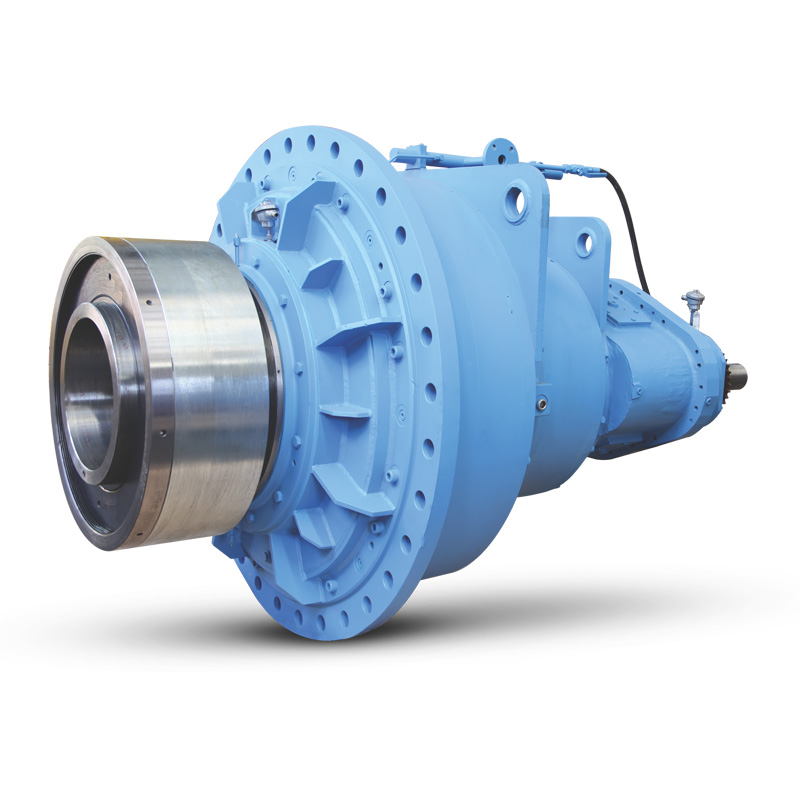 Riduttore planetario elicoidale montato su albero per l’azionamento per pressa a rulli.